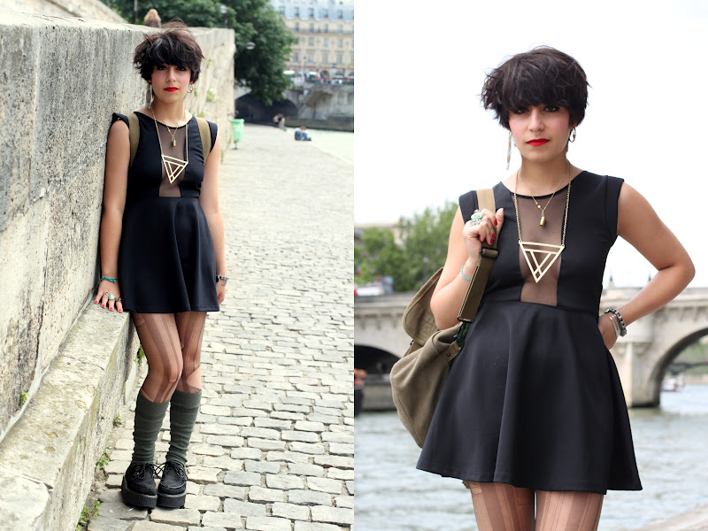 I spent my day with Miranda in Saint-Michel. Her style is still very original and I always like it. I think that she was very sexy in this dress and how she married vintage clothes is so stylish.