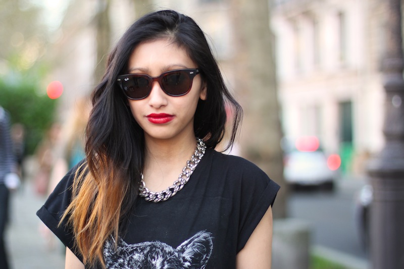 Sinon pour ma tenue, j’ai fais simple un tee-shirt que j’ai trouvé sur le site Atelier Amelot qui allait bien avec mon collier chaîne que je porte très souvent d’ailleurs et sinon je me suis cachée derrière mes lunettes de soleil parce que j’avais une tête horrible et oui après une longue journée, mon visage fatigue!