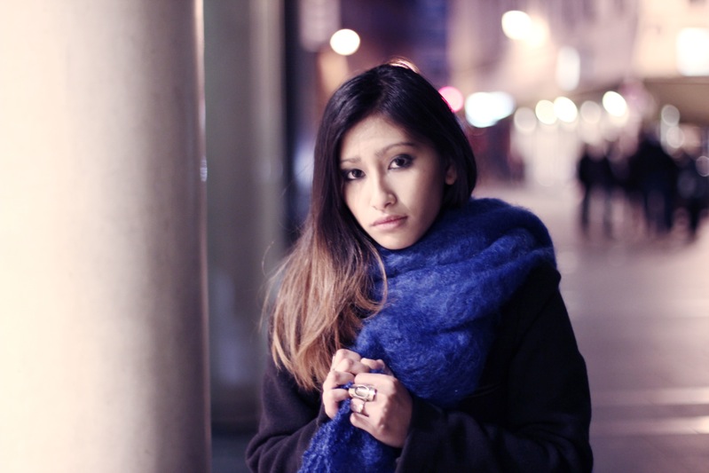 J’aime beaucoup l’association du bleu et du noir, un look très réussi comme toujours, et mention spéciale à l’écharpe en cachemire !